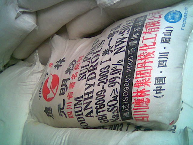 硫酸鈉,無機化合物,又名無水芒硝,白色、無臭、有苦味的結晶或粉末, 有吸濕性。外形為無色、透明、大的結晶或顆粒性小結晶。主要用于制水玻璃、玻璃、瓷釉、紙漿、致冷混合劑、洗滌劑、干燥劑、染料稀釋劑、分析化學試劑、醫藥品等。 |